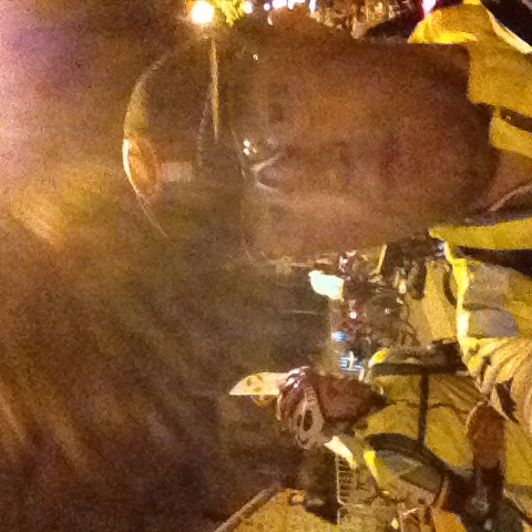Après une heure de route, Miguel est toujours à l’avant et le peloton se forme derrière lui comme un Roi qui enrôle ses compagnons vers la conquête du Graal. Nous arrivons alors à Gambai et c’est parti pour une course effrénée. On passe la bosse de Gambaiseuil à toute vitesse et on remet une couche. Plus de douleur nul part, il reste 22 km, Alain passe devant, les Bulgares descendent une dent et Matteo aussi. Les motards se positionnent devant nous comme des Fangio et arrêtent les camions et autres véhicules qui nous gênent. C’est l’euphorie, on roule à une vitesse entre 35 et 40 heures en plein Paris en brûlant les feux rouges avec les motards devant. Une voiture de Police nous croisent, les motards s’arrêtent au feu suivant et les Bulgares ne comprennent pas. Je leur explique qu’on n’a pas le droit de passer, que nos motards ne font pas partie de la Police. Voilà comment on peut avoir un accident me dis-je … Nous rentrons dans le Parc du Golfe de Saint-Quentin à toute vitesse, les motards passent les barrières, Matteo et les deux Bulgares aussi alors qu’elle se referme juste devant moi. Un gros coup de frein, plus de gomme aux pneus. J’ai évité la grosse chute in extremis. Du coup, on calme le jeu et nous arrivons finalement à 7 sur la ligne d’arrivée à 19:14. Alain, Mig, Bugs, Matteo, Stef et les 2 Bulgares.